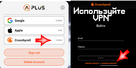 - Для привязки кранчирола вам достаточно в версии Аплюс создать сам аккаунт Аплюса, а затем к нему привязать кранчирол (существующий или создать пустышку). Это звучит долго, но на самом деле занимает 3-4 минуты и в дальнейшем заказ по входу будет доступен вам всегда :) Если вам трудно - пишите нам в чат - мы подскажем.